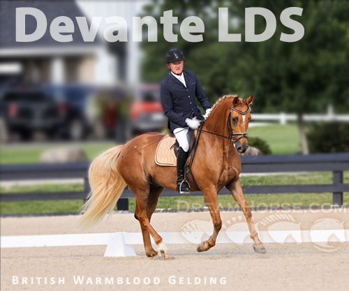 Devante LDS is a super fun horse, showing 3rd level. He is a 2016 British Warmblood registered with the BWBS (https://www.bwbs.co.uk), and has his permanent measurement card at 15.3H. Suitable for a pro, or confident AA/jr/yr. "Davey" is very kind, willing and uncomplicated to ride and handle. Always the same day in-day out, a true joy to ride, train and show. While quite environmentally aware, he has absolutely no vices or bad manners/habits. He can be a little nervous in new surroundings, but will settle in and get to work after a bit of time walking and looking around. I have had him since a yearling, and take him everywhere by myself (60+ year old AA) to shows and lessons. He won 2nd Level Open Small Horse Championships with the NDPC (National Dressage Pony Cup) with my trainer at the World Equestrian Center in Ohio in 2023. I captured 5th Place for Amateurs (out of 22) in the NDPC Championships in 2024. In 2025 we concentrated on as many local shows as possible at 3rd level for him to gain practice and confidence with his changes. He was earning scores of 62-64% by the end of the season. He will stay with his trainer through the end of the year near Chicago. Current videos, and LOTS of photos available. Reasonably priced for his talent, level of training, and show experience. I have a new prospect up and coming, which motivates me to sell him. Available for trialing, and willing to negotiate. This horse is a big mover, with extensive training and show experience. He has impeccable manners and is easy to handle in every way. Excellent radiographs from 2023 are available. Many photos and videos are available upon request. Registration papers with the Warmblood Breeders Studbook-UK can be seen here: https://www.icloud.com/sharedalbum/#B13GRMtznG70DEc Davey's sire, TRELIVER DECANTER, can be seen here: https://www.youtube.com/watch?v=yD1Sfs3jPFw