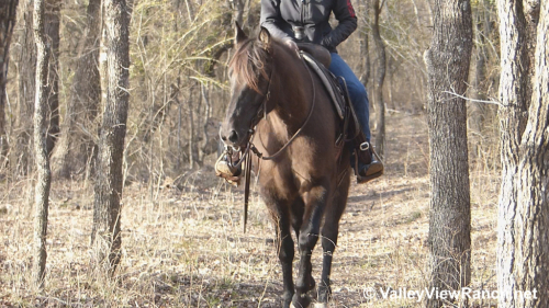 Poco is a phenomenal ranch and trail horse! He has the best handle and is so enjoyable to ride! Poco is well broke and quiet on the trails. He's happy to mosey along on a loose rein and picks up a nice jog or lope when asked. He has the best rocking chair lope. Poco goes out alone and with other horses. He crosses water, logs and is great on cattle in the pens or out in the pasture. He has been used for day work and gets the jog done well every time. He is patient and quiet, willing to just hangout and stand well without getting fidgety. He worked in the feed yard, cattle barns, sorted inside and outside, opens and shuts gates and been roped off of. Poco has a great stop, picks up both his leads, and has a smooth walk, jog, lope, with an excellent stop and turnaround. He is easy to catch, lead, load, haul, bathe, groom, pick feet, saddle, bridle, and good for the vet and farrier.
