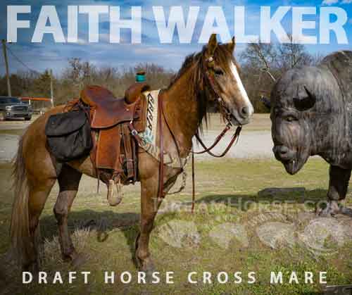 Name: Faith Walker Breed: Draft Cross Sex: Mare Age: 3 years Height: 14.1 hands (and still growing) Temperament: 1/10 β exceptionally calm Faith Walker is a stunning young Draft Cross mare with a rock-solid foundation and an unbeatable temperament. She is barefoot, sound on all four hooves, with clean legs, bright clear eyes, and overall excellent health. She has passed a Pre-Purchase Exam (PPE) and has current Coggins papers. Faith is truly exceptionalβextremely gentle, highly desensitized, and impressively intelligent. Sheβs eager to please, incredibly willing, and has that endearing "in-your-pocket" personality. Her ground manners are impeccable, and she is soft in the mouth, handy with a neck rein, and responsive to cues. She stops on a dime and backs up with ease. This mare is fearlessβshe goes the pace you ask for, is gun-safe, and is a dream on the trails. She confidently crosses rocks, creeks, steep hills, water, and logs with sure-footed precision. She has seen wildlife and remains calm and composed. Faith can be ridden bareback or with a saddle and is unfazed by dogs, cats, other horses, cattle, traffic, trains, ATVs, lawnmowers, and four-wheelers. She loads and unloads from a trailer with ease, and sheβs a breeze to brush, bathe, saddle, unsaddle, and catchβsheβll even meet you at the gate. She stands quietly for the farrier and has no vices or bad habits. With her fearless disposition and strong foundation, Faith is ready for any directionβbe it trail riding, mounted shooting, or any discipline her new rider chooses. You simply wonβt find another draft cross mare this young, this smart, and this experienced. It has been an absolute privilege to train her, and whoever takes her home is truly getting a gem. Come meet Faith in person or arrange for shipping if you're unable to make the trip. Contact: Justine Jackson Riding Free Equine π (580) 615-1124 π§ ridingfreeequine@gmail.com