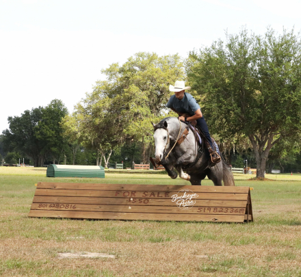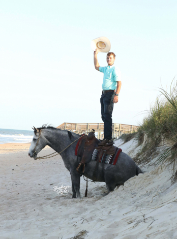 Meet Dexter, a 2020 AQHA dapple grey gelding that stands out in both looks and ability. At 14.2 hands, Dexter is built like a tank with a solid, muscular frame and four white feet that give him a striking appearance, along with a unique touch of white on his nose. His eye-catching looks will certainly turn heads wherever he goes, but it is his versatility and hardworking nature that truly make him special. Dexter has proven himself in many areas, he has been ridden extensively in the arena, on trails, and even out on the ranch gathering cattle. With his sturdy build and reliable work ethic, Dexter is more than capable of handling a day of hard work, whether that is riding out to move cattle or tackling any job around the ranch. His strong, steady gaits make him an excellent choice for trail rides, and he has been on overnight rides, where he showed great endurance and a calm demeanor in new environments. When it comes to handling different terrains and obstacles, Dexter is always up for the challenge. He has been exposed to traffic, water, taking everything in stride without hesitation. He handles crossings and uneven ground with ease, making him a reliable mount whether you’re out on a trail ride or working cattle in challenging conditions. Dexter has three smooth and comfortable gaits, making him a pleasure to ride both on trails and in the arena. He has a good one-hand neck rein, making him responsive and easy to guide in any direction. Dexter listens well to his rider, is responsive to cues, and remains calm and collected, whether he is riding out in the open or working in more challenging conditions. Due to the rough terrain where he is often ridden, he wears shoes on all four feet, ensuring that he has the traction and support needed for a long day of riding. Beyond his skills and abilities, Dexter has a gentle, sweet personality. He loves attention and is easy to handle on the ground, always meeting you at the gate and enjoying time spent with his rider. He loves people, enjoys being pampered, and thrives on human interaction. Whether you are a seasoned rider looking for a dependable workhorse or someone just starting out who needs a steady and patient mount, Dexter is up for the task. From gathering cattle in the morning to evening trail rides, Dexter is a reliable, hard-working gelding that can do it all. If you are looking for a horse with the looks, the talent, and the heart to match, Dexter is sure to be the perfect fit for any rider. For more information, please call Duane @ 330-231-2324