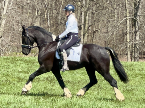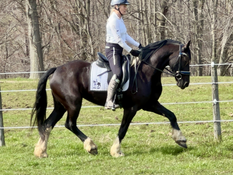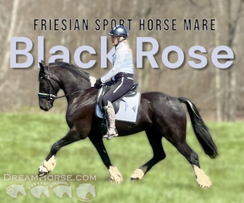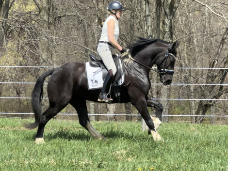 Absolute Darling and eye Candy, look at this registered half Friesian half pony Sweetheart! Rosie was started under saddle when she was 3 years old but then through no fault of her own was put out in pasture and just hung out. Last winter she was started in harness and had about 2 months of driving training until I picked her up and re started her for dressage in March. She has been an absolute pleasure to work with, never naughty always trying her best. Rosie can be a bit insecure at times but with a confident rider is happy to follow the lead. she really has a great work ethic and is NEVER naughty. Super smooth movement with uphill tendencies and great balance make her a super prospect for the sport of Dressage. She also enjoys time being ridden outside the arena. No soundness concerns.