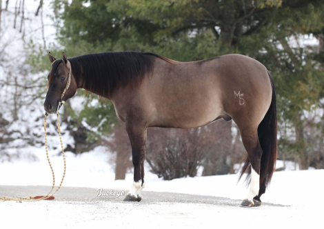 Wow—what a standout individual. Since the very first time he stepped into our barn, Steel has been something special. He quickly became Henry’s go-to horse and has stayed that way ever since. There is just something about him—the way he carries himself, his sharp mind, and his kind, willing heart—that sets him apart. A 2019 model AQHA grullo gelding standing 15 hands tall, Steel has the kind of hard-to-find grullo color that turns heads, and when you add his striking three white socks and excellent conformation, you get a horse that gets attention everywhere he goes. Steel has been in the Buckeye program for a year and a half, and in that time, he exceeded our expectations at every turn. No matter what we have asked—trail riding, ranch work, new obstacles, or even competing in a ranch rodeo—he’s stepped up with confidence, try, and a “let’s do this” attitude. He has been hauled to different locations, exposed to new situations, and nothing has rattled him. Steel has been ridden on busy state roads and through creeks, used to check cows, and taken on large group trail rides. He is always the same, whether it is his first ride of the week or the first ride in a month. His gaits are buttery smooth and comfortable enough to ride all day. He flows effortlessly from an extended trot to a soft jog to an easy lope, and his lead changes are natural and balanced. He is light in the bridle, responsive to your leg, and a pleasure to ride whether you are in the arena or out in the open. But what truly sets Steel apart is his heart. He absolutely loves people and soaks up attention—especially if it comes with a good scratch behind the ear (his favorite spot). He will melt into your hand, close his eyes, and let out the kind of sigh that tells you just how content he is. In the barn, he is a total gentleman—quiet in his stall, respectful in the wash bay, and stands perfectly for the farrier. He is easy to trailer, good around other horses, and always eager to see you coming. There is no doubt about it—this one’s going to be hard to let go. Steel is not just a good horse; he is family. He has been such a steady, happy presence in our lives, and knowing the kind of joy and trust he brings to every ride makes it all the more emotional to see him move on. We know he will make someone incredibly happy—and we are proud to offer him as the kind of once-in-a-lifetime partner people dream of finding. Steel is up to date on vaccinations, deworming, and dental care. He wears shoes on all four feet because of the terrain where we ride, but he has strong, healthy hooves and could easily go barefoot in the right setting. Whether you want a horse to take to the show pen or one to ride quietly down the trail, Steel will be right there with you, ready to give you his whole heart. If this sounds like the horses that you have been looking for, please feel free to reach out to Duane @ 330-231-2324 for more information or to schedule a day to see him in person.