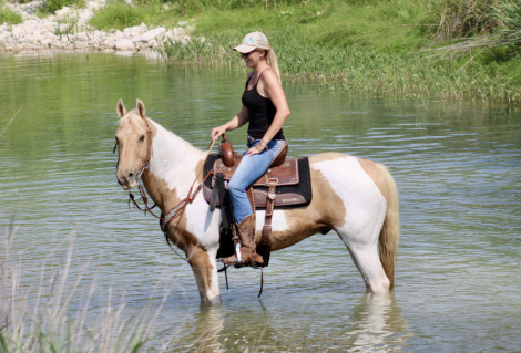 Reduced for fast sale due to unexpected vet bills.. Opie is a gorgeous paint gelding that is safe and fun for the whole family. He isn’t the ride and slide type but is absolutely safe and will even lay down for you to mount! Opie has belonged to an older lady the past 4 years and has done parades, camping, extensive trails, etc. He will go anywhere you point and and isn’t spooky. Opie is easy to haul and unloads at a new place just as confident as he is at home. He will ride with a group or independently and isn’t buddy sour. We have ponied off of him and he is a great leader for less confident horses. Horses like him don’t come around real often, he’s a gem! Feel free to give me a call at (830)329-6472 for more information. Most of our horses are sold off of their videos but we are more than happy to FaceTime so you can “meet” him in real time. Located in Harper, Texas but shipping is available anywhere at very reasonable rates. We have a great hauler!