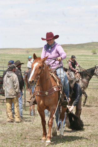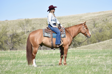 Canyon is a beautiful dun gelding that you can enjoy doing all the ranch jobs, covering the trails or taking to the arena. He has plenty of experience and seen long days. Canyon is a stout gelding with good bone and stands a shy 15 hh, an easy, perfect size. Canyon is gentle, safe and patient and a great horse for the whole family. Rope, ranch, trail ride; Canyon is extremely versatile. You’ll enjoy his calm easy lope on a loose rein, smooth lope departures, pretty spins and stops. Canyon has more of a laid back personality and enjoys a calm walk or fun little trot heading down the trails. He is a horse with a lot of natural collection, is soft sided and you’ll love his big kind personality that’ll meet you at the gate. He has a well rounded background with lots of experience in and out of the arena. He has ranched and doctored in the plains of Kansas, drug calves and covered big country in SD, been trail rode in the hills and shown in some small versatility events. He’s pulled calves to the fire, gathered, paired, sorted, and doctored in the pasture. He is quiet and cowwy and yet still has plenty of speed and feel. He is calm and quiet to do the ranch jobs and great to cover the miles. Canyon is super solid on the trail and accustomed to all kinds of terrain, water, rivers, mud, wildlife, traffic, machinery, dogs, kids, and anything you throw at him. He has toted my kiddos around the ranch with me and takes care of all of us. His sweet, kind, meet you at the gate personality everyone enjoys and he is an asset to anyone’s program. Enjoy him wherever you choose. Canyon sells June 14th in Sheridan, WY at the Cowgirl Cadillacs Horse Sale. Online bidding is available, anyone can come to the sale and see him in person or come try him out before the sale in Red Owl, SD.