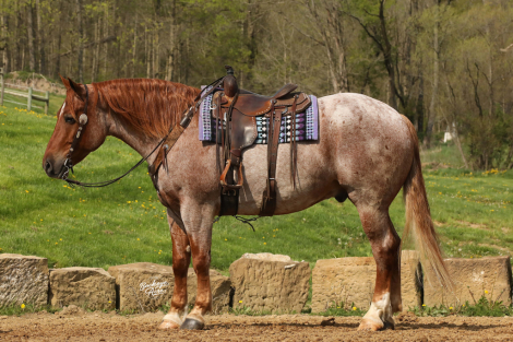Buckeyes Crimson is the kind of horse that turns heads and wins hearts wherever he goes. At 5 years old, this Draft cross gelding stands a strong and sturdy 16.2 hands tall and carries himself with quiet confidence. He is built like a tank but moves with surprising grace, and his looks are just the beginning. Crimson’s striking red roan coat is accented by two white socks, a long flowing red mane and tail, and a bold white diamond-shaped star on his forehead. He is a true picture of beauty and strength, and his kind, intelligent eyes reflect the sweet soul within. Crimson is broke-broke—safe and dependable for riders of all levels, from beginners to seniors. He rides Western, English, and bareback, and also drives, making him incredibly versatile. Whether you want to hit the trails, go for a carriage ride, or just enjoy a quiet hack around the farm, Crimson is ready and willing. He has an excellent one-hand neck rein, smooth transitions, and three incredibly comfortable gaits. His walk is steady, his trot is soft and rhythmic like a rocking chair, and his canter feels like you’re floating through the clouds. You will find yourself smiling every time you ride him. Crimson has been trailered to different locations and ridden in a wide range of environments. He has been on countless trail rides, through creeks, up and down hills, across open fields, and even down busy state roads. He has been used to check cows and taking in new surroundings without hesitation. He is desensitized to tarps, jugs, gunshots, and whips—nothing rattles this guy. In the barn, Crimson is a true gentleman. He is always the first to meet you at the gate, ready for a little love and a scratch. He is respectful, easy to handle, and a joy to be around on the ground as well as under saddle. Crimson wears shoes on all four feet due to the terrain he is been ridden on, but he has strong, healthy feet and could go barefoot. He is fully up to date on vaccinations, deworming, and dental care. He is 100% sound and ready to go in any direction you choose. If you are looking for a dependable, beautiful, and bombproof all-around horse that can do it all—ride, drive, Western, English, bareback, and more—Buckeyes Crimson is the one. With his kind heart, good mind, and stunning looks, he is ready to be your next partner and best friend. Please call Duane @ 330-231-2324 for more info or to see him in person.