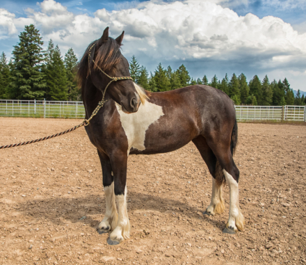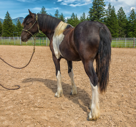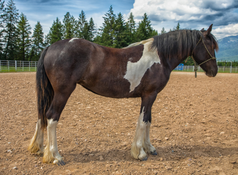 This sweet girl will be 2 in the spring of 26 and has the calm and sweet disposition of both parents. Her mom is a registered Haflinger horse and dad is a registered gypsy vanner, both known for their very calm dispositions. She spent 3o days with a professional trainer. Leads well, ties up great, loads and travels great, does well with feet and will always come right up to you in the pasture. In your pocket friendly, will follow you all over the pen. Excellent confirmation and large for her age. Should have lots of feathering as both parents are heavily feathered. Trainer said she has no issues at all. Not sure on her height exactly but she’s close to her mom’s height and her mom is 15 hands. Located in Kalispell MT